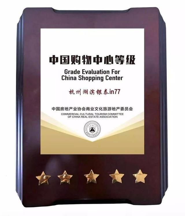 杭州湖濱銀泰in77榮獲中國房地產(chǎn)業(yè)協(xié)會(huì )商業(yè)文化旅游地產(chǎn)委員會(huì )頒發(fā)的“五星購物中心”榮譽(yù)