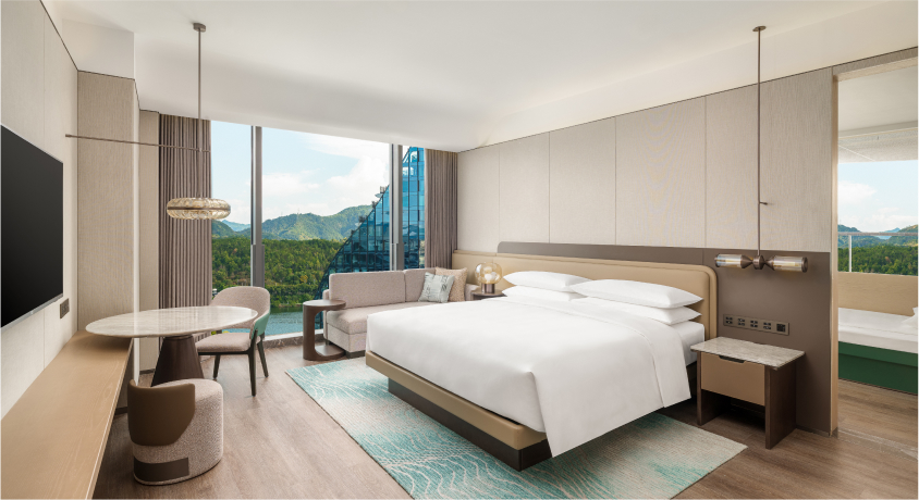 緊鄰碧波蕩漾的麗水南明湖畔,四周群山環(huán)抱,外形結合了山和波浪的特點(diǎn),室內設計汲取了浙南自然山水及云和梯田景觀(guān)的靈感,構筑當代人文藝術(shù)體驗。將城市的繁華與自然的寧靜巧妙融合,是對高端旅行體驗、自然美景與人文情懷深度融合的一次深刻探索與精彩呈現。