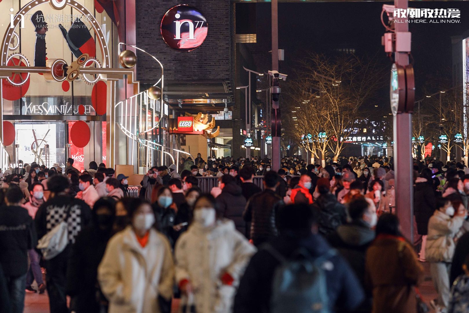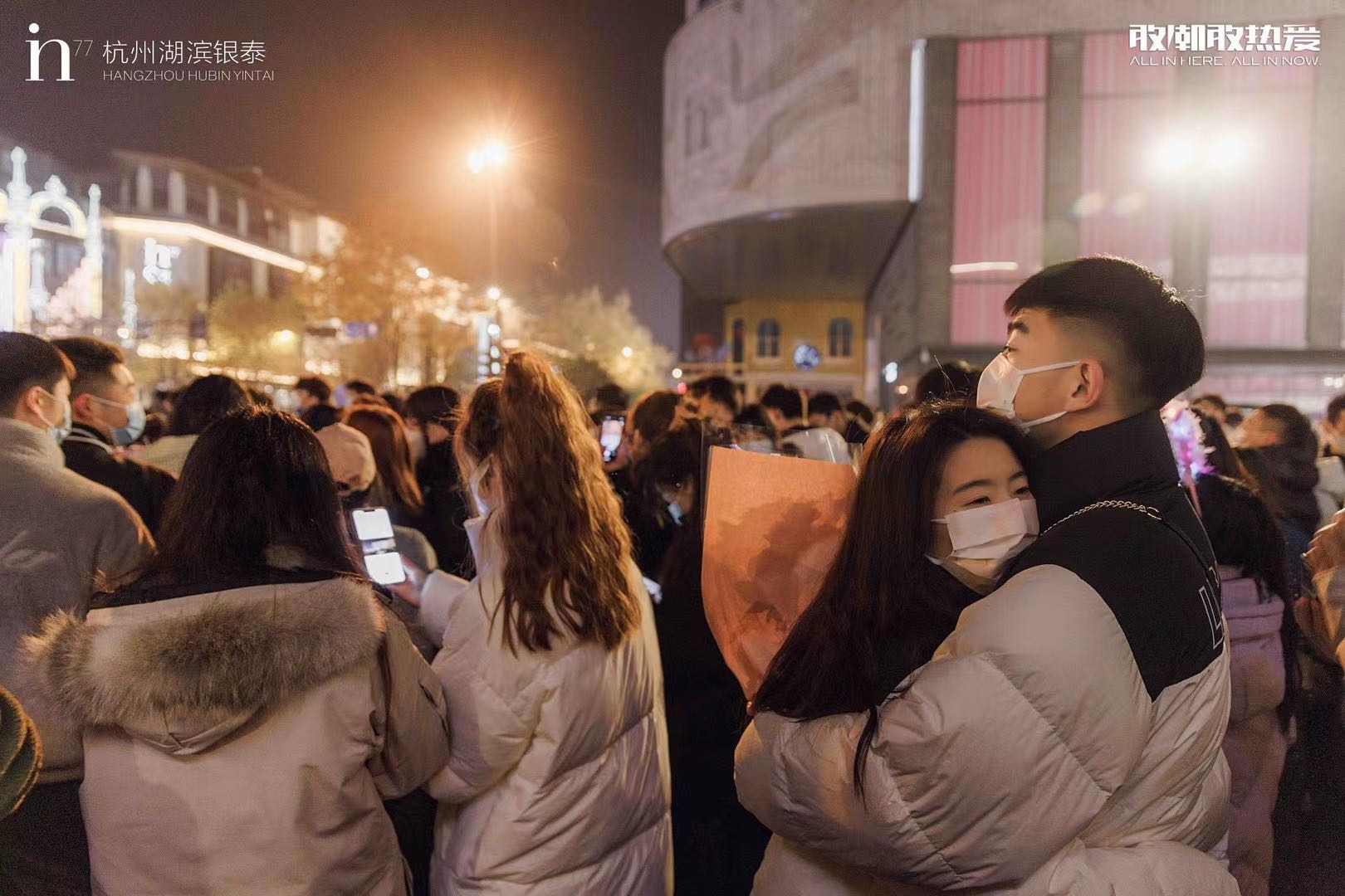 2022的最后一晚,在杭州湖濱銀泰in77打烊之后,無(wú)數人們依然自發(fā)向這里聚集,拿起手機,等待著(zhù)新年倒計時(shí)。