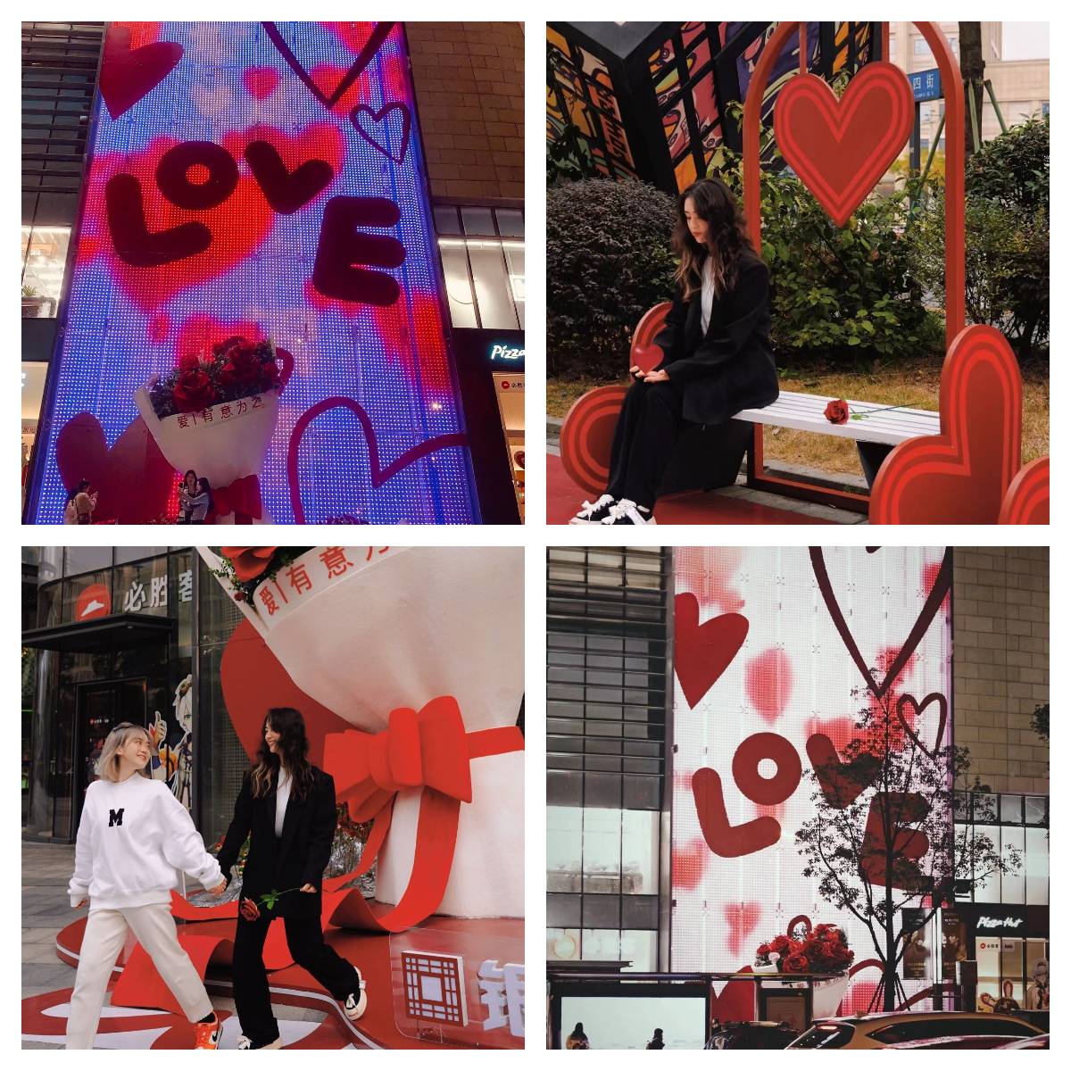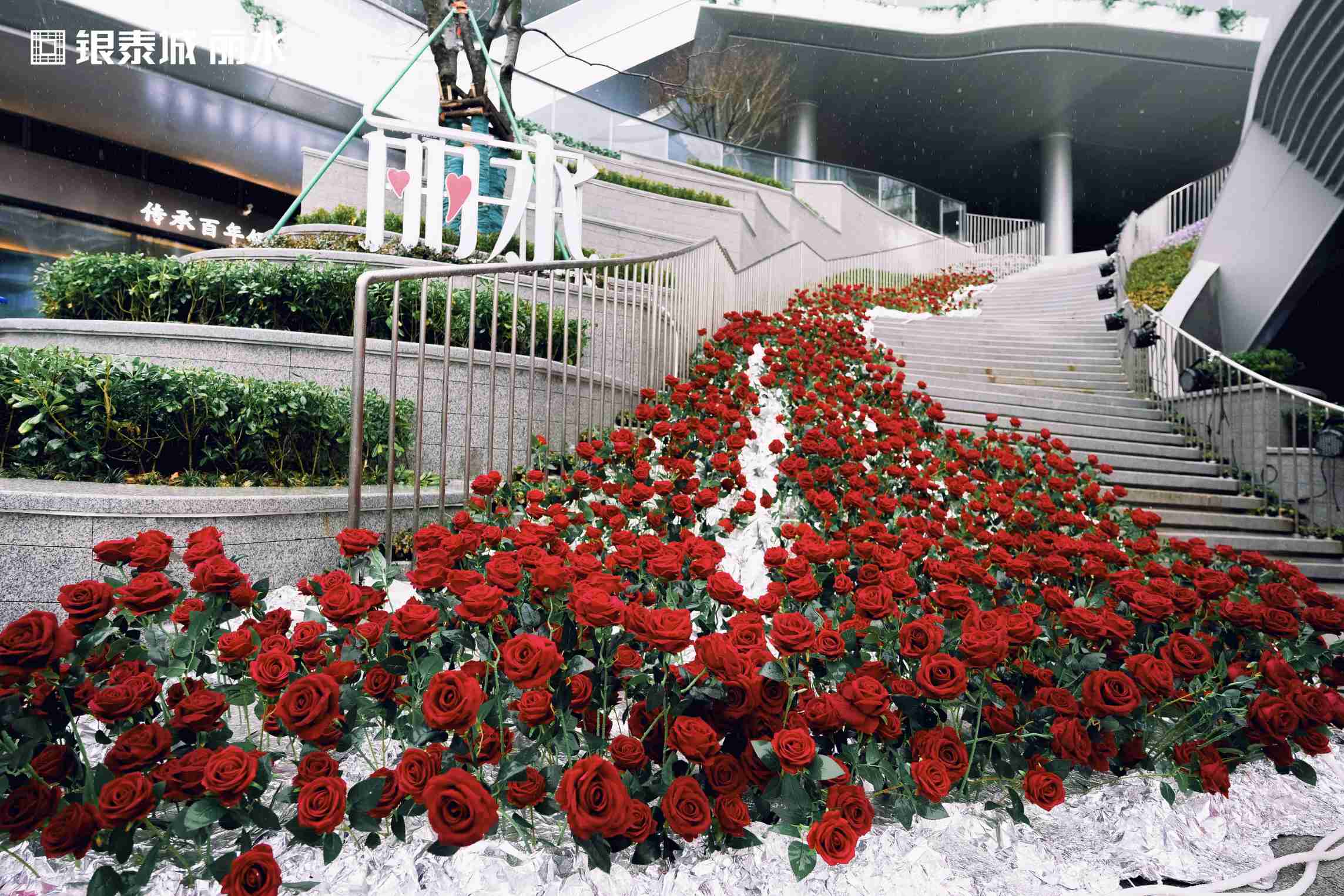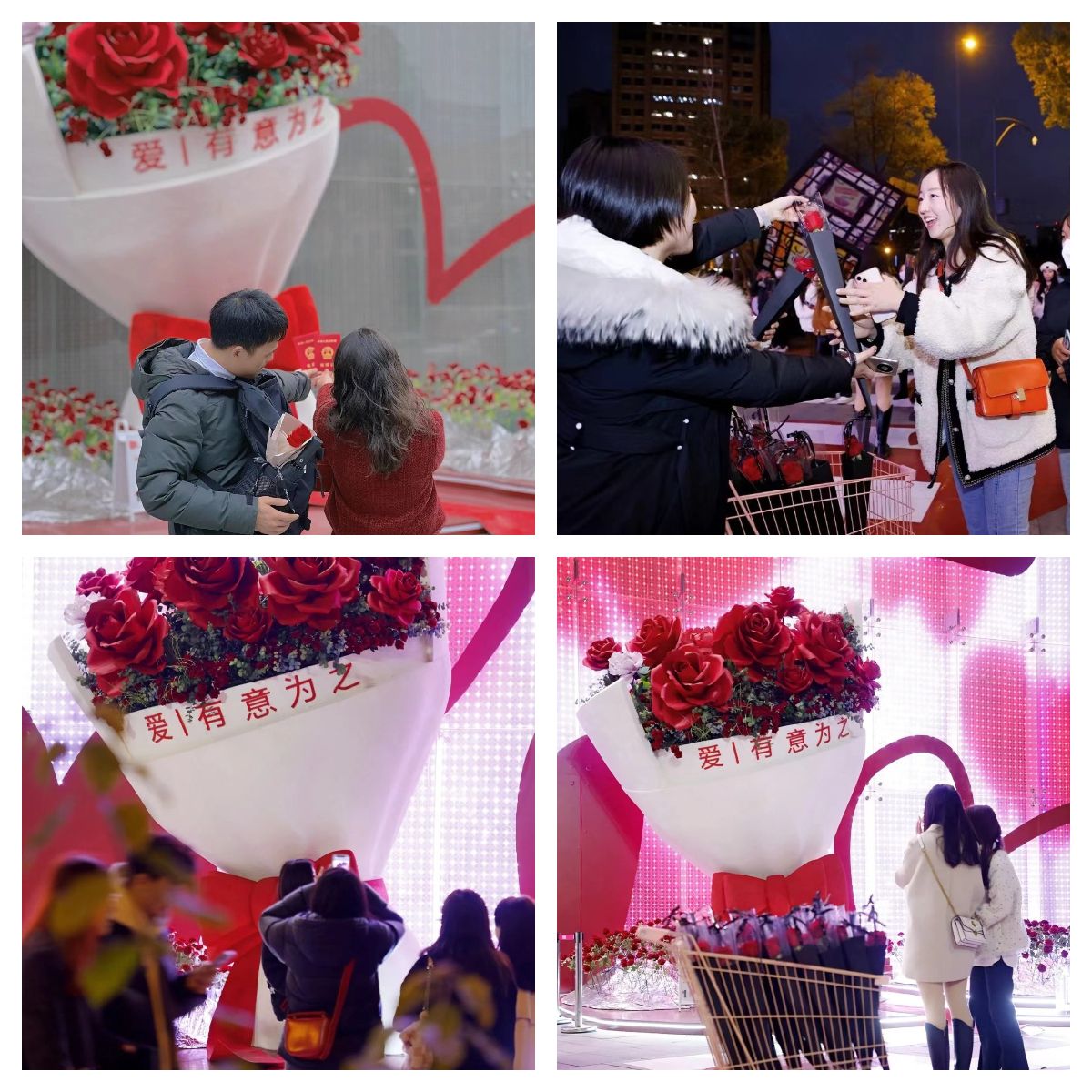 成都銀泰城打出了“愛(ài)|有意為之”的主題,給成都這座城市送上了5米高的巨型玫瑰花束。
