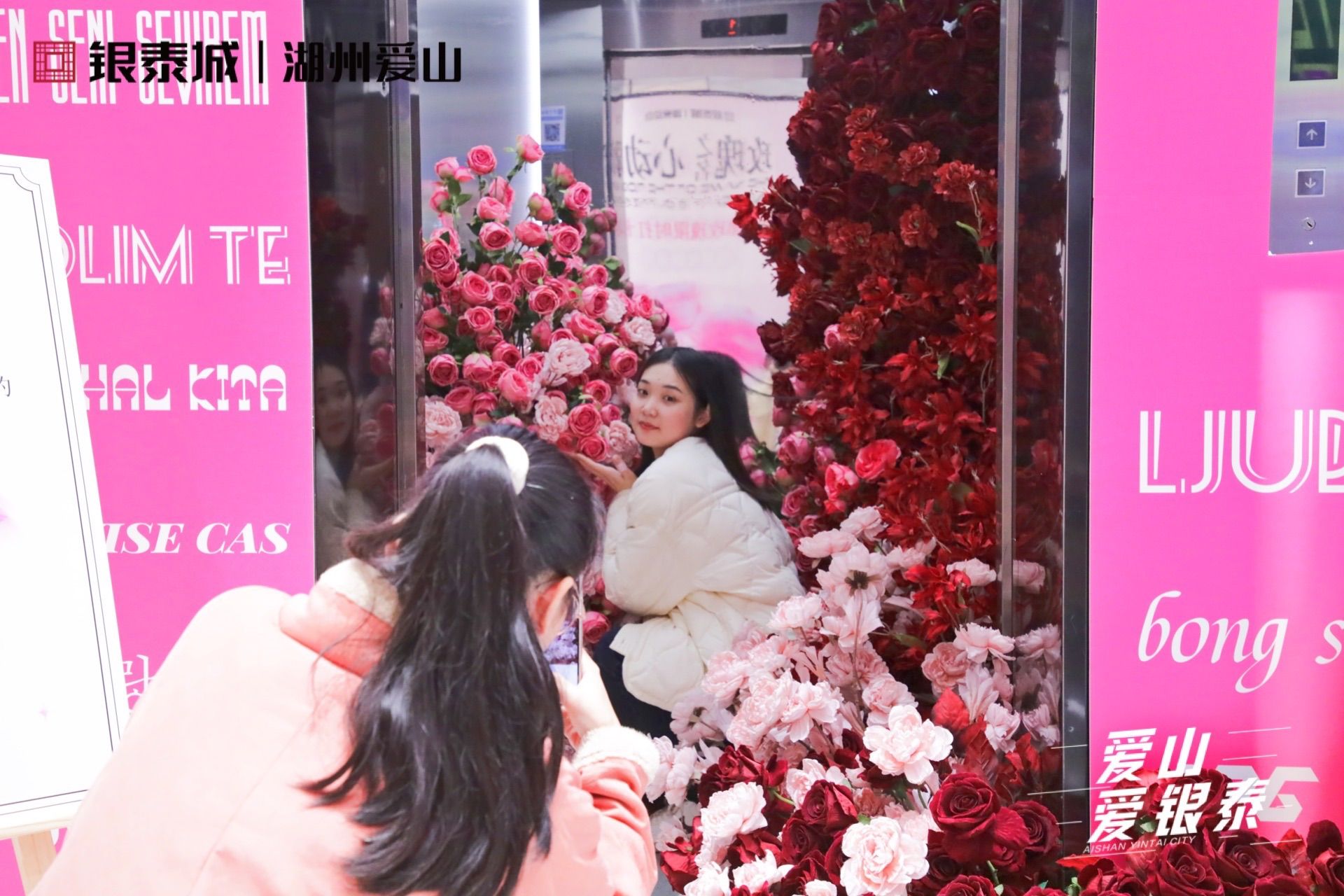 “排一個(gè)多小時(shí)才打卡,但是真的很出片!”這電梯有點(diǎn)不一樣,電梯里長(cháng)滿(mǎn)了玫瑰花。湖州愛(ài)山銀泰城以“玫瑰之名 心動(dòng)至上”為主題,搭建的玫瑰電梯主題展深受湖州本地年輕人喜愛(ài)。自從玫瑰電梯主題打卡點(diǎn)開(kāi)幕后,現場(chǎng)每天排隊時(shí)間都要超過(guò)一個(gè)小時(shí),小紅書(shū)、抖音曝光超百萬(wàn),成為情人節中的人氣話(huà)題焦點(diǎn)之一。