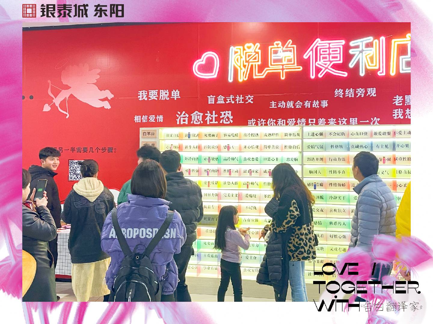 東陽(yáng)銀泰城為來(lái)年輕人們直接開(kāi)啟了脫單便利店,盲盒式社交,可免費領(lǐng)取對象,終結旁觀(guān),只要主動(dòng)點(diǎn),就會(huì )有故事。