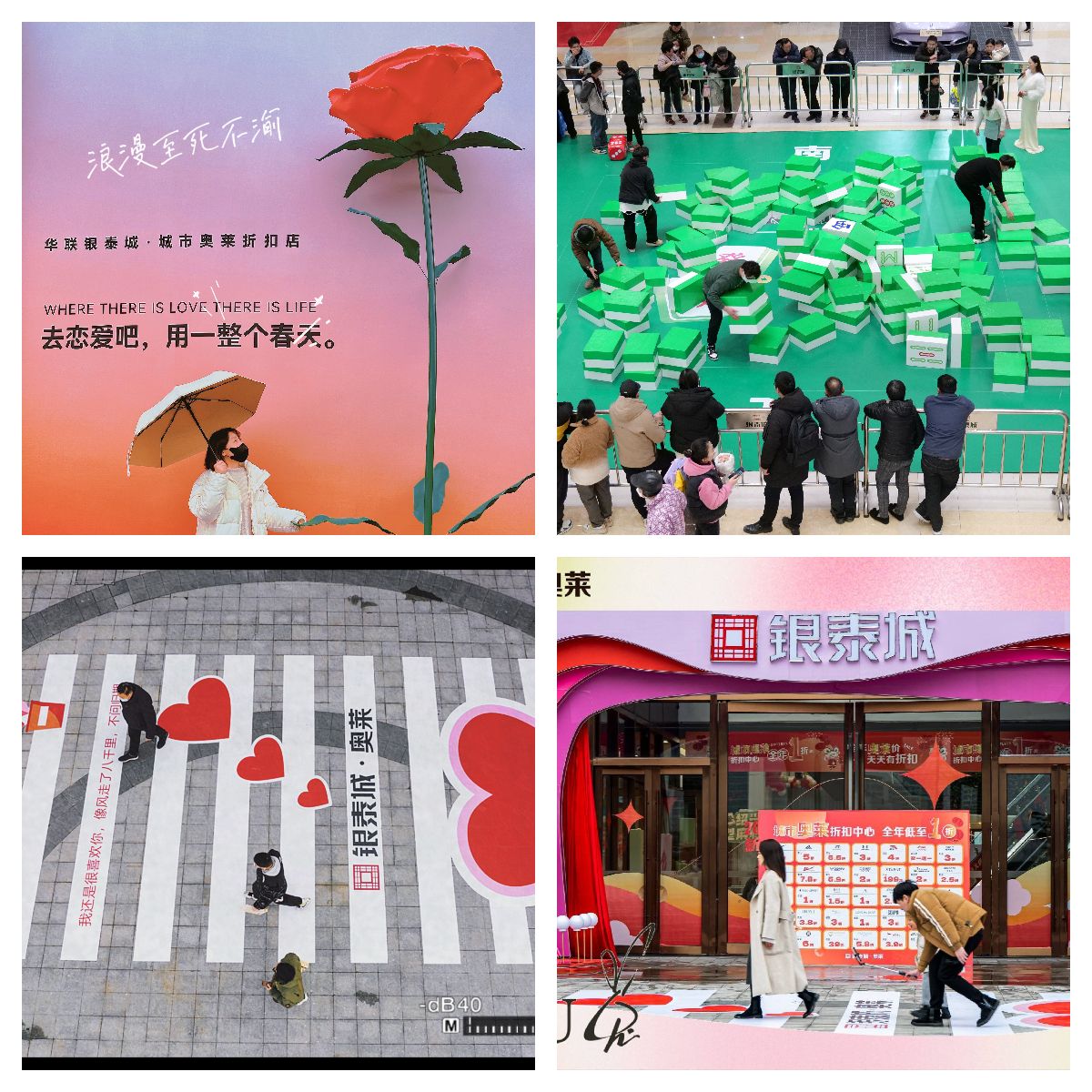 本次情人節活動(dòng),紹興華聯(lián)銀泰城奧萊店推出了經(jīng)典愛(ài)情斑馬線(xiàn)和巨型玫瑰,還舉辦了紹興首屆麻將大賽(這個(gè)麻將,是真的大)。再匹配上愛(ài)情盲盒活動(dòng),幫助年輕人遇見(jiàn)愛(ài)情。人們連忙感慨:“紹興銀泰也太會(huì )拿捏浪漫這件事了!”