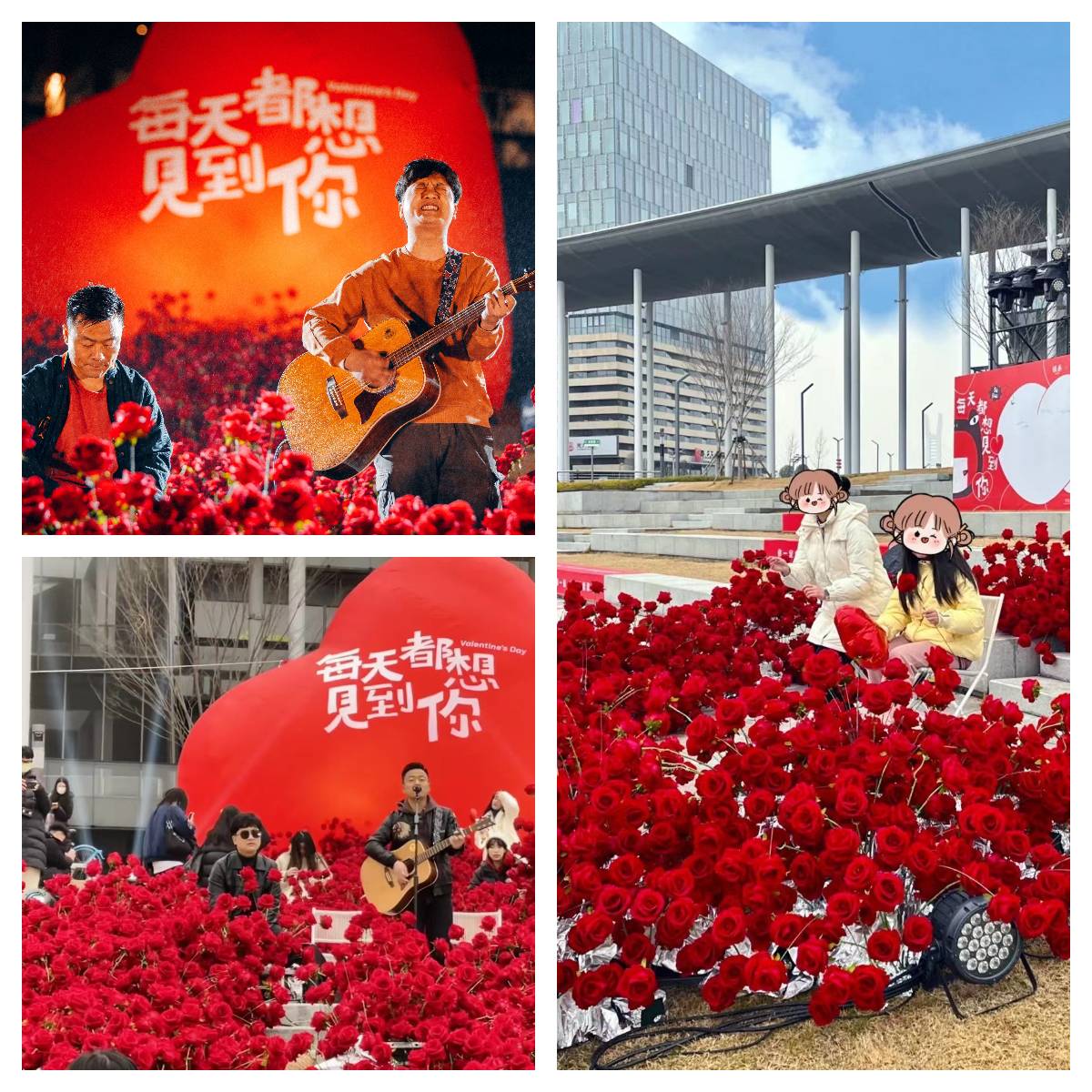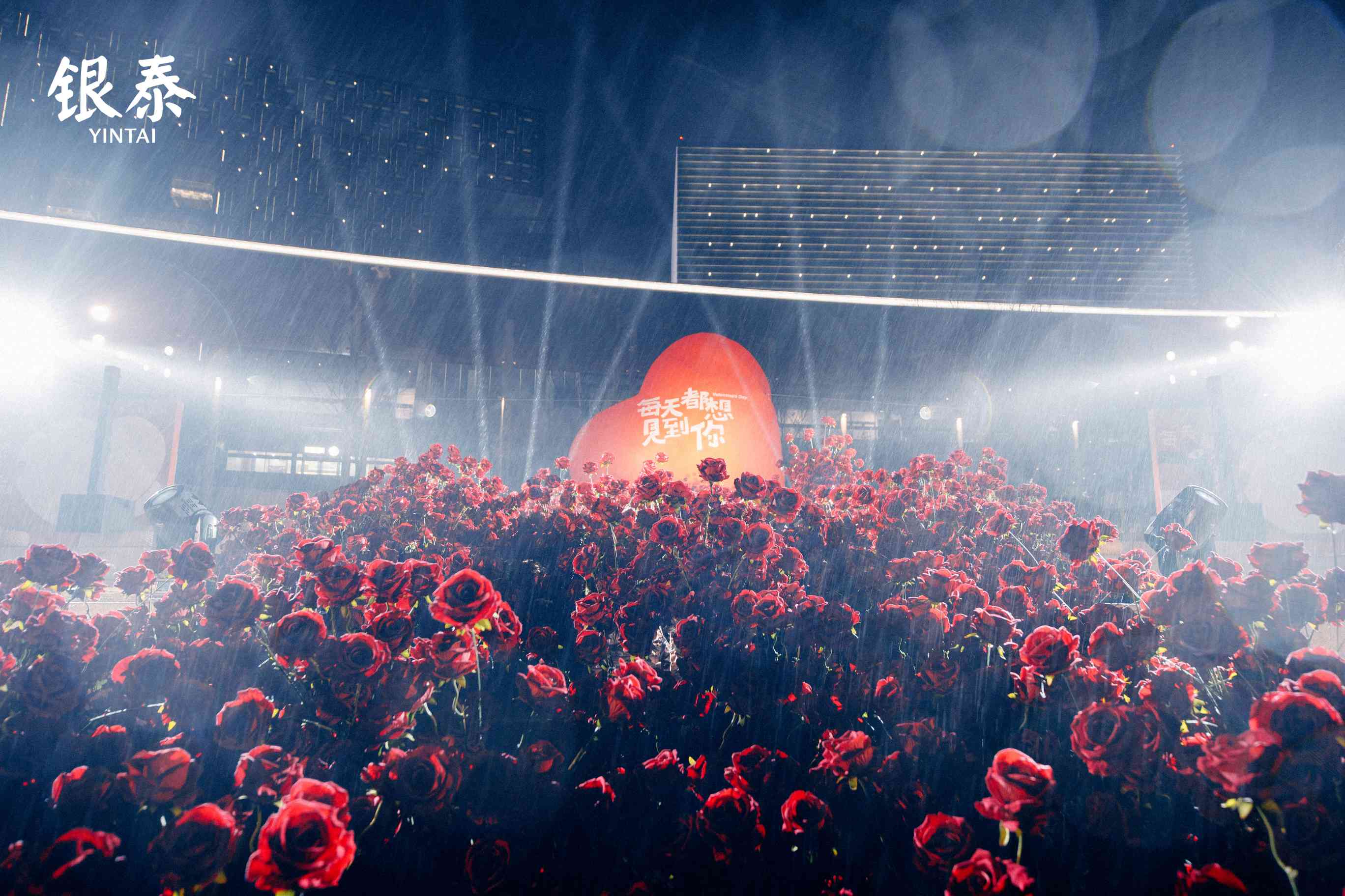 在鄭州北龍湖金融島,還在籌備期的鄭州銀泰項目,舉辦了“每天都想見(jiàn)到你”的主題音樂(lè )會(huì ),還有震撼的玫瑰瀑布鋪陳在一級一級的大臺階上。