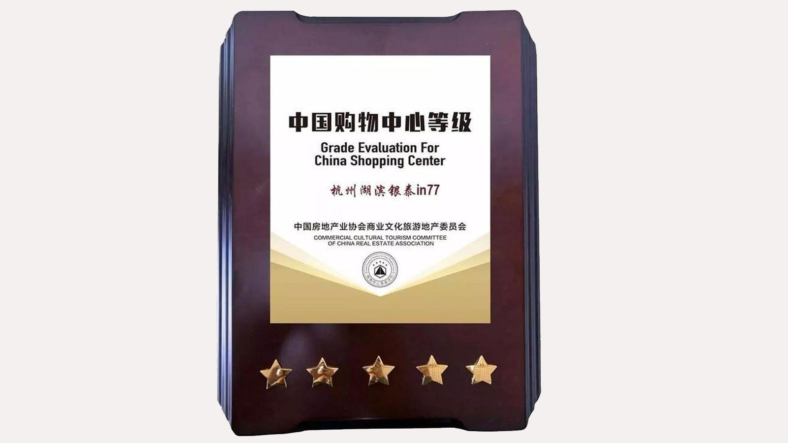 依據2019年《購物中心等級評價(jià)標準》,中國房地產(chǎn)業(yè)協(xié)會(huì )商業(yè)文化旅游地產(chǎn)委員會(huì )專(zhuān)家小組歷時(shí)數月,從設計規劃、硬件設施、運營(yíng)管理、消費體驗四個(gè)維度進(jìn)行嚴格評定后,于2019年7月正式授予杭州湖濱銀泰in77“五星購物中心 ” 殊榮
